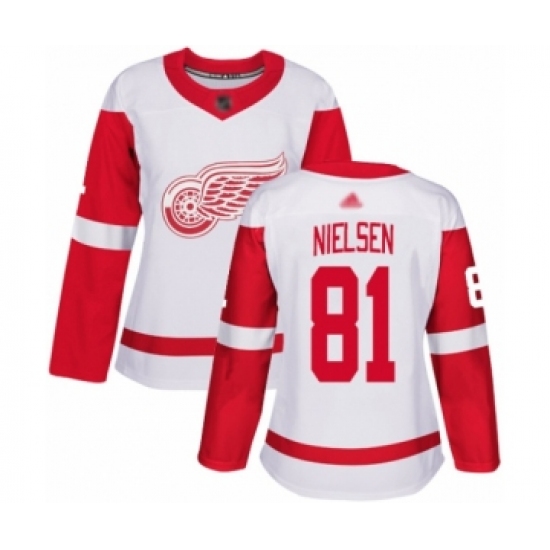 Women's Detroit Red Wings #81 Frans Nielsen Authentic White Away Hockey Jersey