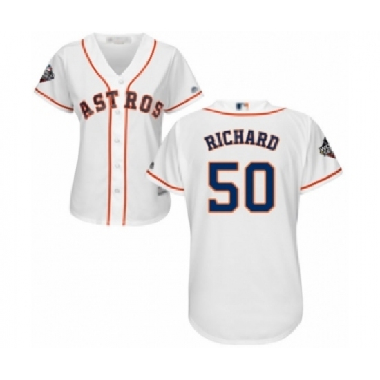 >Women's Houston Astros #50 J.R. Richard Authentic White Home Cool Base 2019 World Series Bound Baseball Jersey