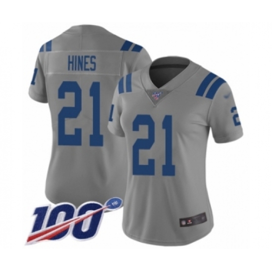 Women's Indianapolis Colts #21 Nyheim Hines Limited Gray Inverted Legend 100th Season Football Jersey