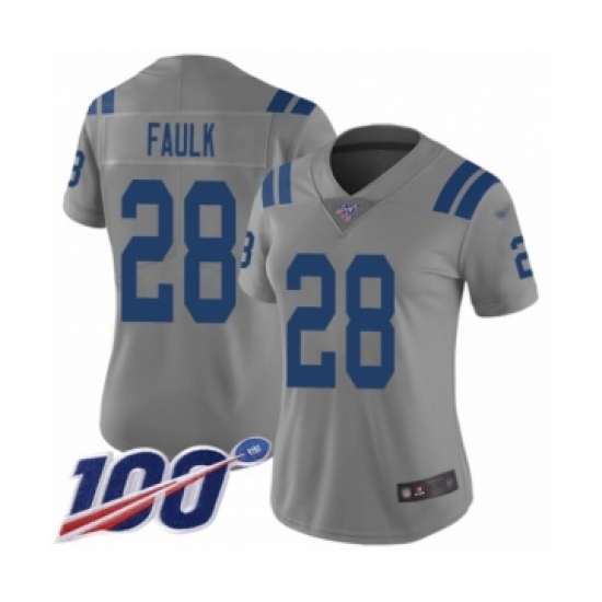 >Women's Indianapolis Colts #28 Marshall Faulk Limited Gray Inverted Legend 100th Season Football Jersey