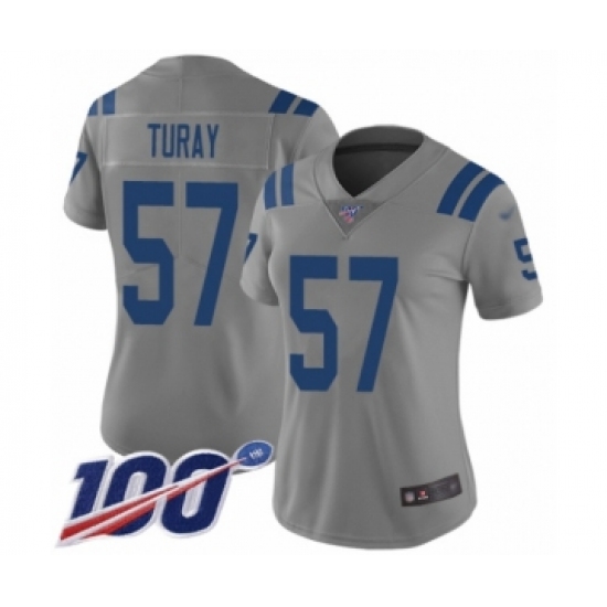 >Women's Indianapolis Colts #57 Kemoko Turay Limited Gray Inverted Legend 100th Season Football Jersey