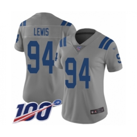 >Women's Indianapolis Colts #94 Tyquan Lewis Limited Gray Inverted Legend 100th Season Football Jersey