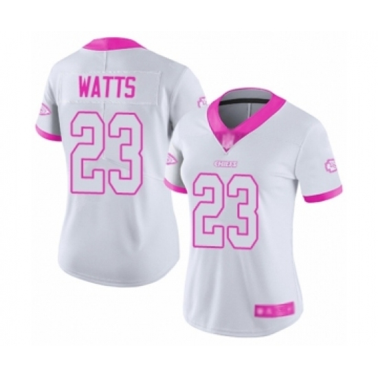 >Women's Kansas City Chiefs #23 Armani Watts Limited White Pink Rush Fashion Football Jersey