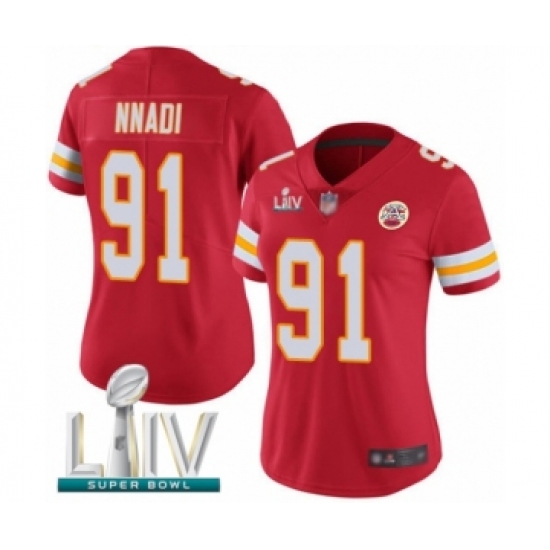 Women's Kansas City Chiefs #91 Derrick Nnadi Red Team Color Vapor Untouchable Limited Player Super Bowl LIV Bound Football Jersey