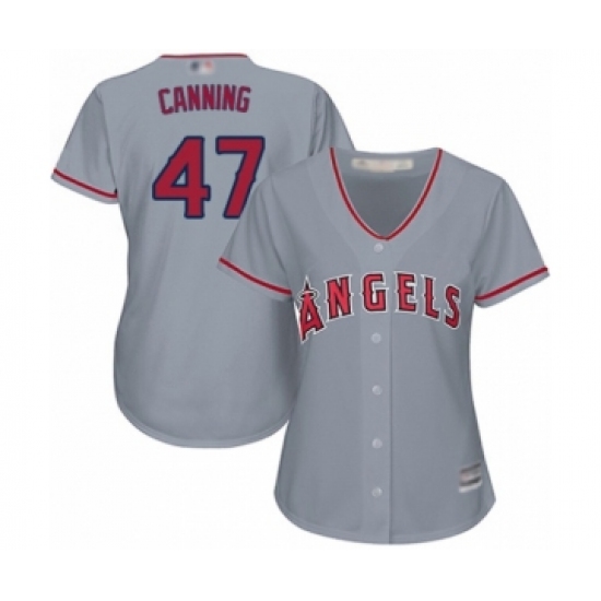 >Women's Los Angeles Angels of Anaheim #47 Griffin Canning Authentic Grey Road Cool Base Baseball Player Jersey