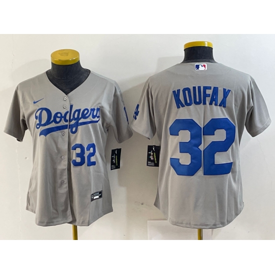 Women's Los Angeles Dodgers #32 Sandy Koufax Number Grey Cool Base Stitched Jerseys