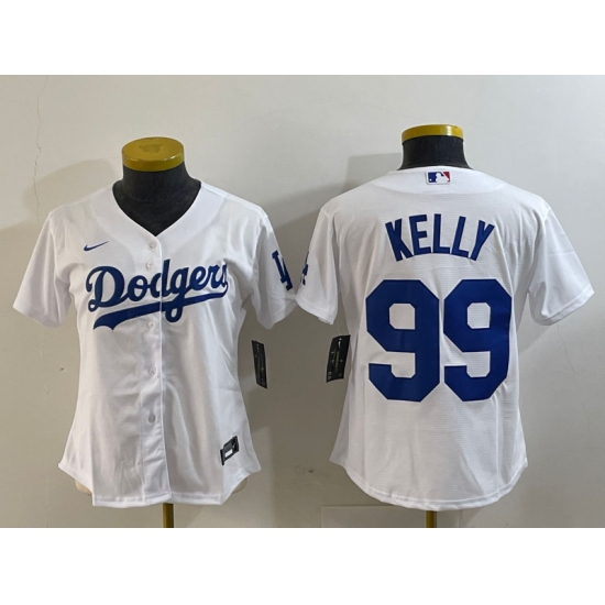 >Women's Los Angeles Dodgers #99 Joe Kelly White Stitched Cool Base Nike Jersey