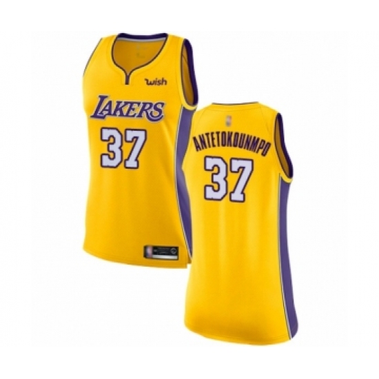 >Women's Los Angeles Lakers #37 Kostas Antetokounmpo Authentic Gold Basketball Jersey - Icon Edition