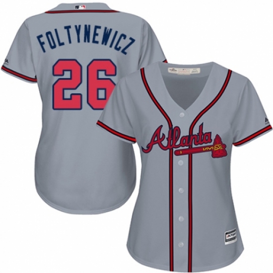 >Women's Majestic Atlanta Braves #26 Mike Foltynewicz Authentic Grey Road Cool Base MLB Jersey