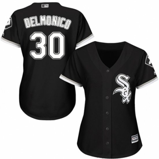 >Women's Majestic Chicago White Sox #30 Nicky Delmonico Authentic Black Alternate Home Cool Base MLB Jersey