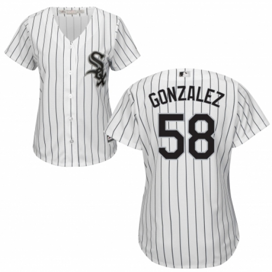 >Women's Majestic Chicago White Sox #58 Miguel Gonzalez Replica White Home Cool Base MLB Jersey