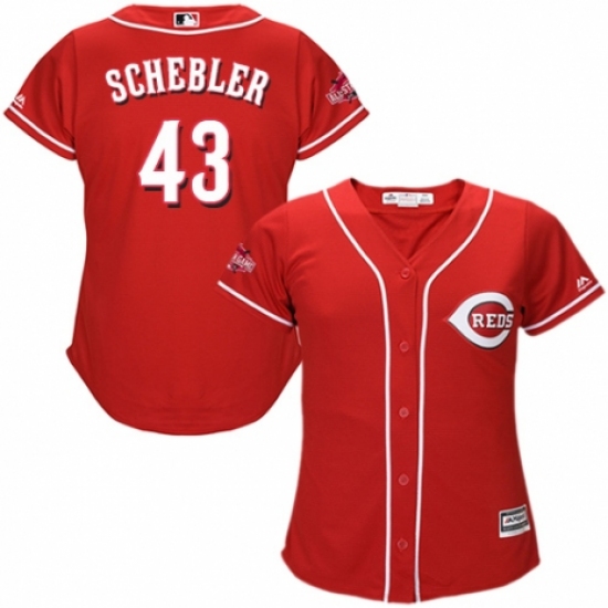 >Women's Majestic Cincinnati Reds #43 Scott Schebler Authentic Red Alternate Cool Base MLB Jersey