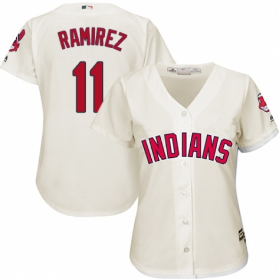 Women's Majestic Cleveland Indians #11 Jose Ramirez Authentic Cream Alternate 2 Cool Base MLB Jersey