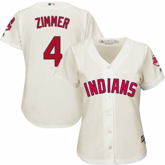 Women's Majestic Cleveland Indians #4 Bradley Zimmer Authentic Cream Alternate 2 Cool Base MLB Jersey