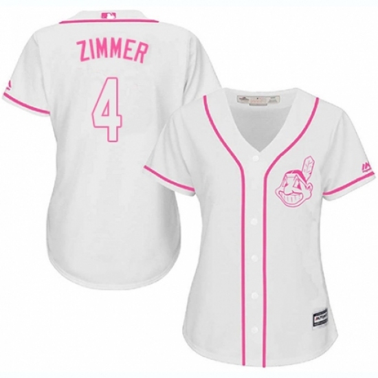 Women's Majestic Cleveland Indians #4 Bradley Zimmer Authentic White Fashion Cool Base MLB Jersey