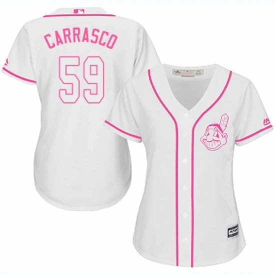 Women's Majestic Cleveland Indians #59 Carlos Carrasco Replica Pink Fashion Cool Base MLB Jersey