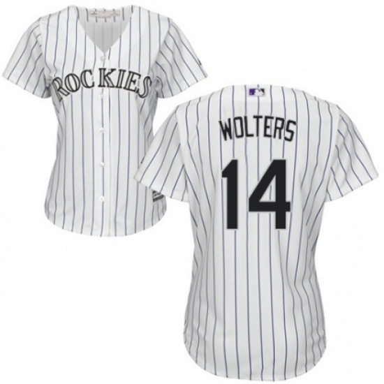 Women's Majestic Colorado Rockies #14 Tony Wolters Authentic White Home Cool Base MLB Jersey