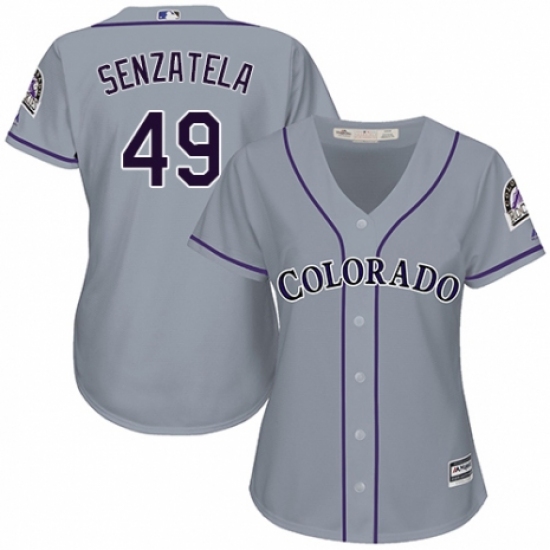 >Women's Majestic Colorado Rockies #49 Antonio Senzatela Replica Grey Road Cool Base MLB Jersey