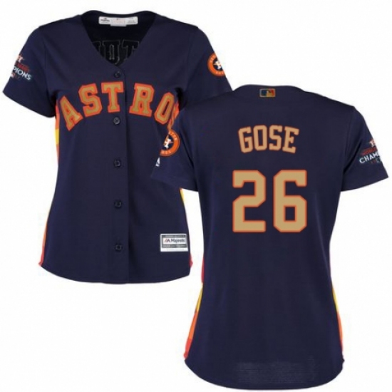 Women's Majestic Houston Astros #26 Anthony Gose Authentic Navy Blue Alternate 2018 Gold Program Cool Base MLB Jersey