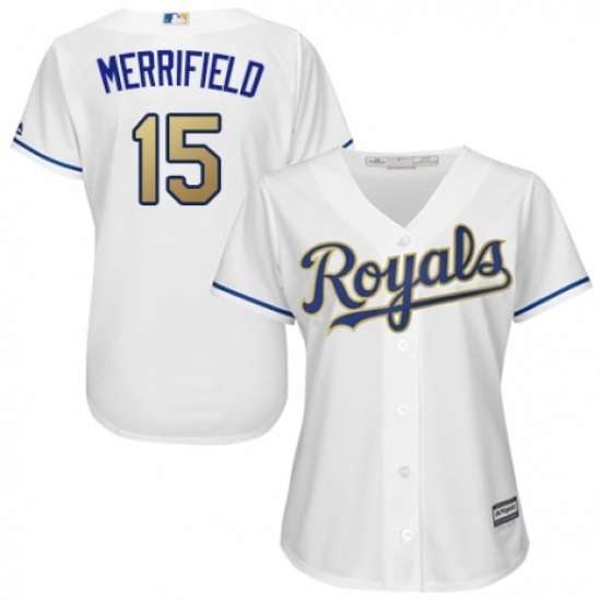 Women's Majestic Kansas City Royals #15 Whit Merrifield Authentic White Home Cool Base MLB Jersey