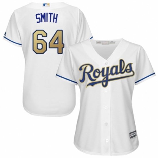 >Women's Majestic Kansas City Royals #64 Burch Smith Authentic White Home Cool Base MLB Jersey
