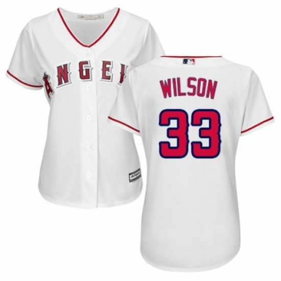 >Women's Majestic Los Angeles Angels of Anaheim #33 CJ Wilson Replica White Home Cool Base MLB Jersey