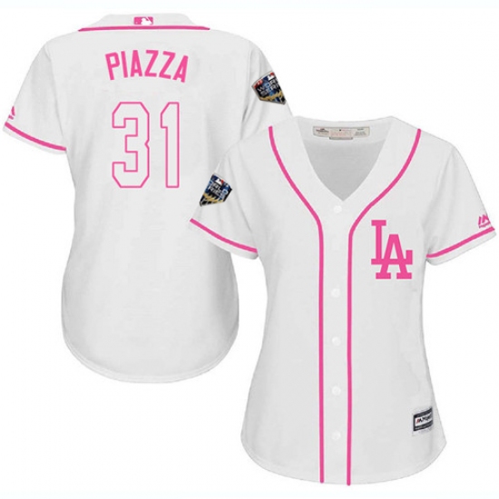 >Women's Majestic Los Angeles Dodgers #31 Mike Piazza Authentic White Fashion Cool Base 2018 World Series MLB Jersey