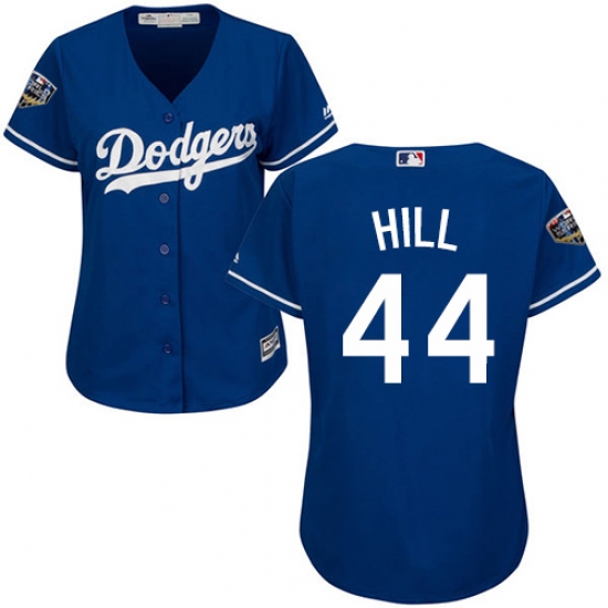 >Women's Majestic Los Angeles Dodgers #44 Rich Hill Authentic Royal Blue Alternate Cool Base 2018 World Series MLB Jersey