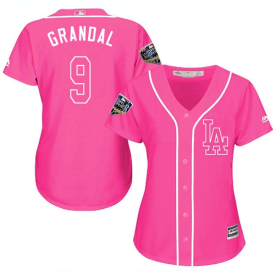Women's Majestic Los Angeles Dodgers #9 Yasmani Grandal Authentic Pink Fashion Cool Base 2018 World Series MLB Jersey