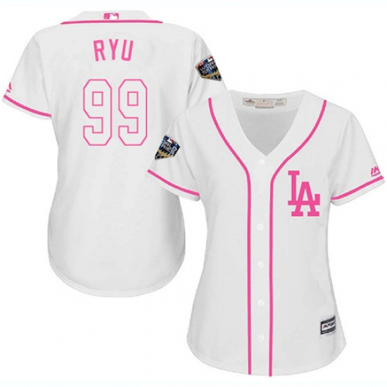 Women's Majestic Los Angeles Dodgers #99 Hyun-Jin Ryu Authentic White Fashion Cool Base 2018 World Series MLB Jersey