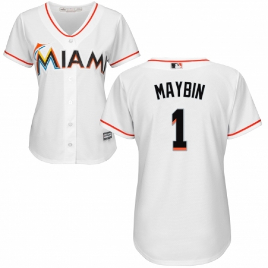 Women's Majestic Miami Marlins #1 Cameron Maybin Replica White Home Cool Base MLB Jersey