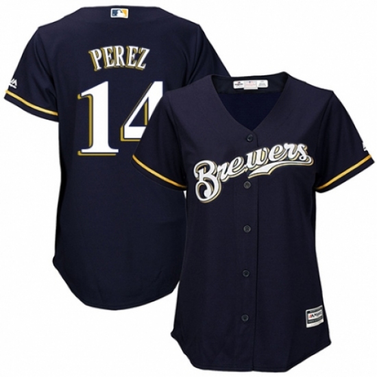 Men's Majestic Milwaukee Brewers #14 Hernan Perez Replica Navy Blue Alternate Cool Base MLB Jersey