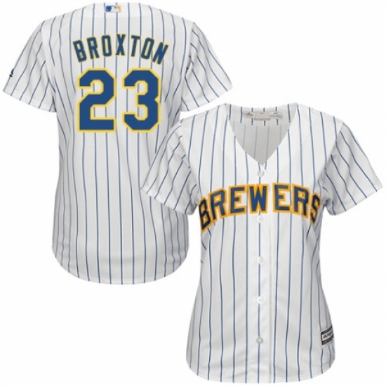 Women's Majestic Milwaukee Brewers #23 Keon Broxton Authentic White Home Cool Base MLB Jersey