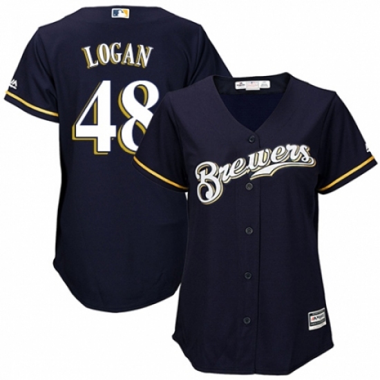 >Women's Majestic Milwaukee Brewers #48 Boone Logan Replica White Alternate Cool Base MLB Jersey
