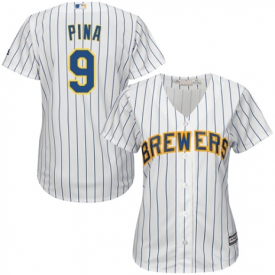 >Women's Majestic Milwaukee Brewers #9 Manny Pina Authentic White Home Cool Base MLB Jersey