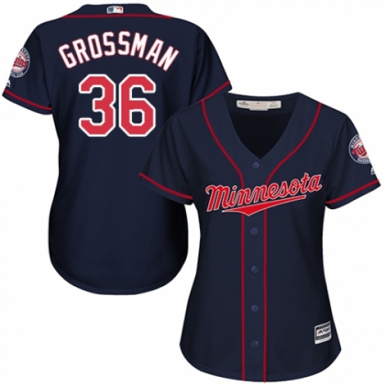 Women's Majestic Minnesota Twins #36 Robbie Grossman Replica Navy Blue Alternate Road Cool Base MLB Jersey