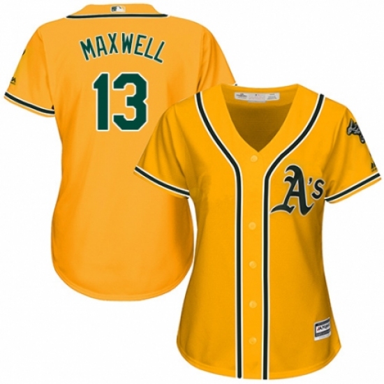 >Women's Majestic Oakland Athletics #13 Bruce Maxwell Authentic Gold Alternate 2 Cool Base MLB Jersey