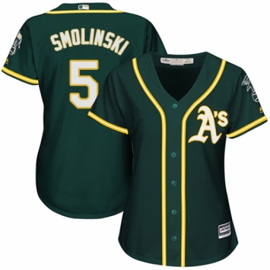Women's Majestic Oakland Athletics #5 Jake Smolinski Authentic Green Alternate 1 Cool Base MLB Jersey