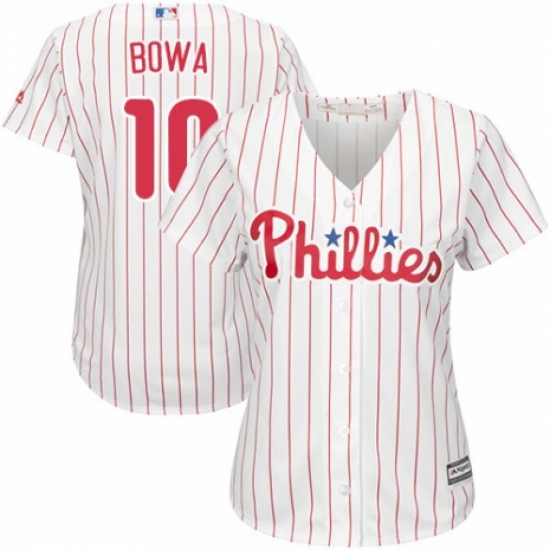 >Women's Majestic Philadelphia Phillies #10 Larry Bowa Authentic White/Red Strip Home Cool Base MLB Jersey