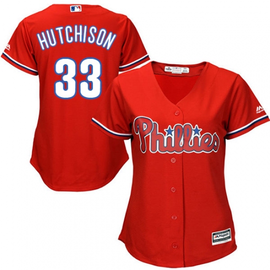 Home>MLB>Philadelphia Phillies>Drew Hutchison>Women's Majestic Philadelphia Phillies #33 Drew Hutchison Replica Red Alternate Cool Base MLB Jersey