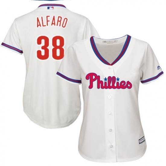 >Women's Majestic Philadelphia Phillies #38 Jorge Alfaro Authentic Cream Alternate Cool Base MLB Jersey
