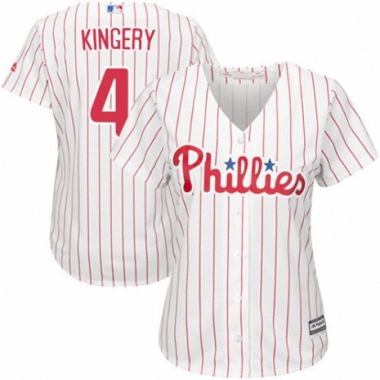 >Women's Majestic Philadelphia Phillies #4 Scott Kingery Authentic White/Red Strip Home Cool Base MLB Jersey