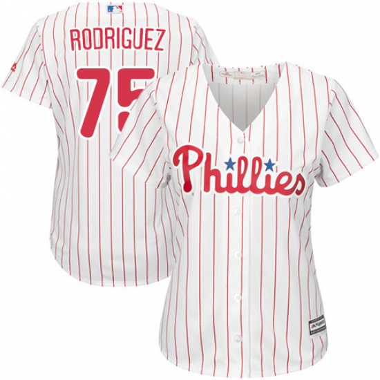 Home>MLB>Philadelphia Phillies>Francisco Rodriguez>Women's Majestic Philadelphia Phillies #75 Francisco Rodriguez Replica White/Red Strip Home Cool Base MLB Jersey