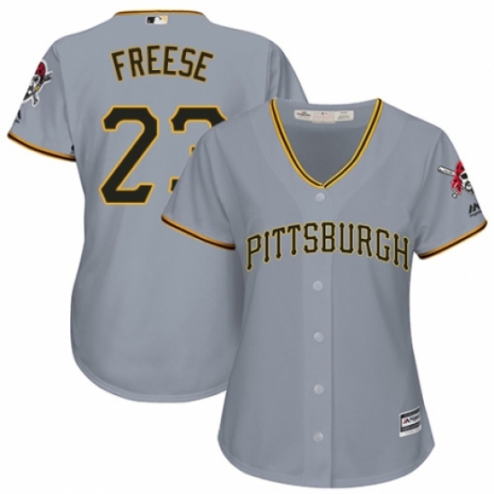 >Women's Majestic Pittsburgh Pirates #23 David Freese Replica Grey Road Cool Base MLB Jersey