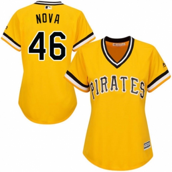>Women's Majestic Pittsburgh Pirates #46 Ivan Nova Authentic Gold Alternate Cool Base MLB Jersey