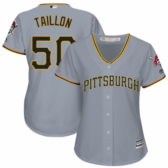 >Women's Majestic Pittsburgh Pirates #50 Jameson Taillon Authentic Grey Road Cool Base MLB Jersey