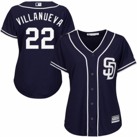 Women's Majestic San Diego Padres #22 Christian Villanueva Authentic Navy Blue Alternate 1 Cool Base MLB Jersey