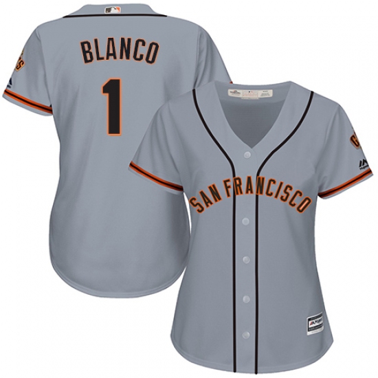 Home>MLB>San Francisco Giants>Gregor Blanco>Women's Majestic San Francisco Giants #1 Gregor Blanco Authentic Grey Road Cool Base MLB Jersey