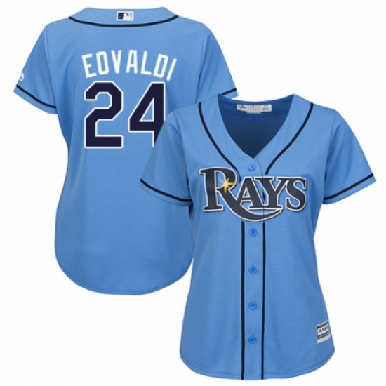 >Women's Majestic Tampa Bay Rays #24 Nathan Eovaldi Authentic Light Blue Alternate 2 Cool Base MLB Jersey
