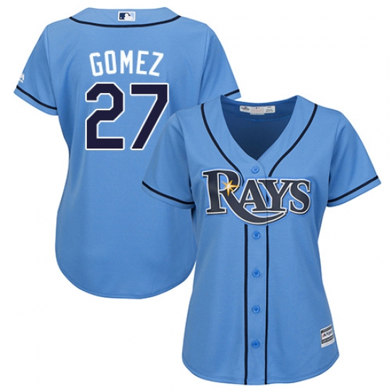 Home>MLB>Tampa Bay Rays>Carlos Gomez>Women's Majestic Tampa Bay Rays #27 Carlos Gomez Replica Light Blue Alternate 2 Cool Base MLB Jersey